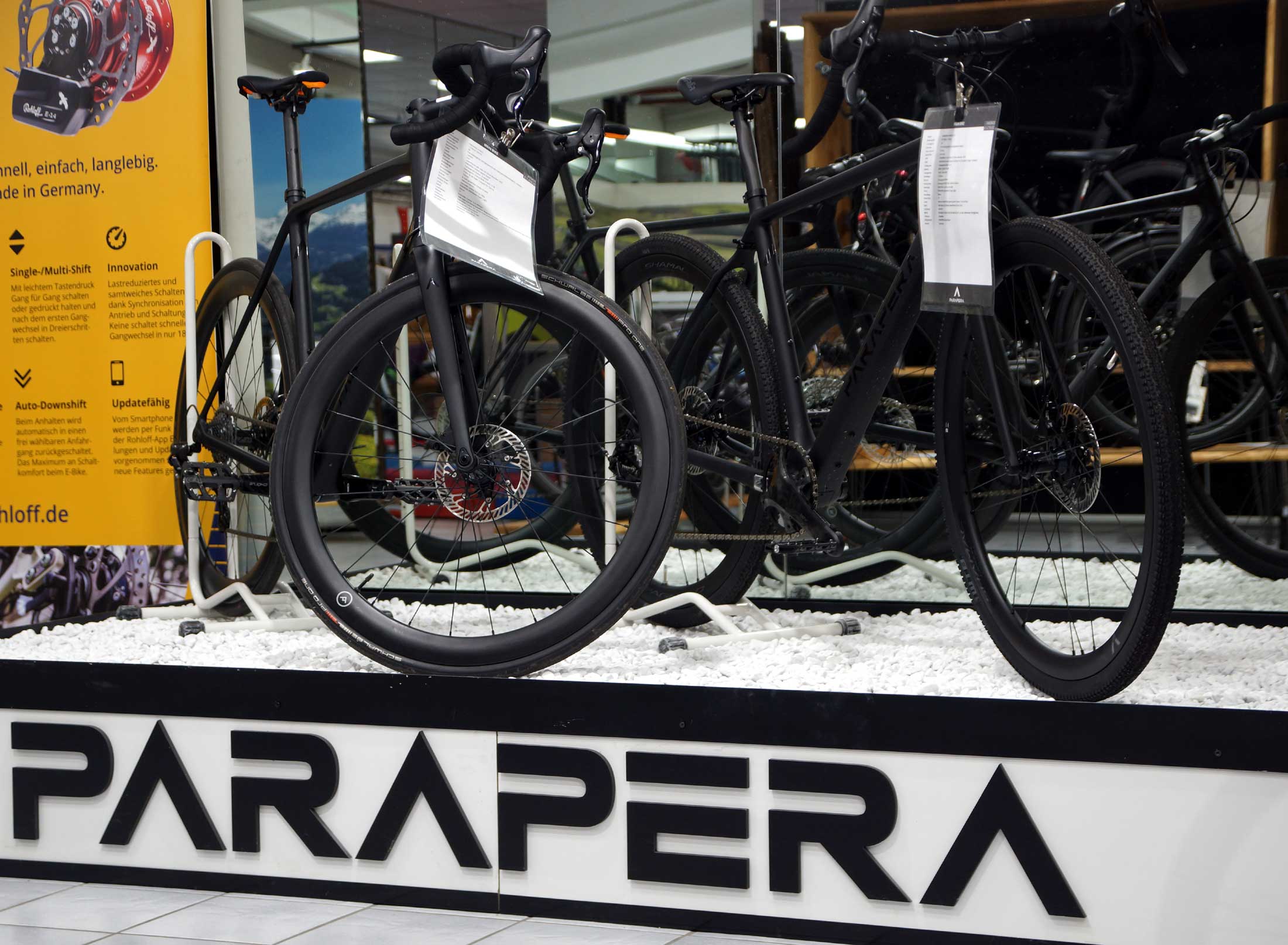 Die Titanrahmen von Falkenjagd werden teilweise im 3D-Druck hergestellt - in fließenden organischen Formen, das Design hat keine Grenzen und die Rahmen sind frei von anfälligen Schweißnähten.Als Leichtgewicht unschlagbar sind die ultraleichten Carbon Bikes von Parapera.